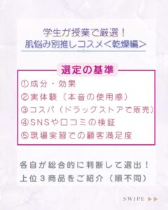 「化粧品学」を勉強する現役学生が、各自肌悩み別にイチオシコスメを選出!